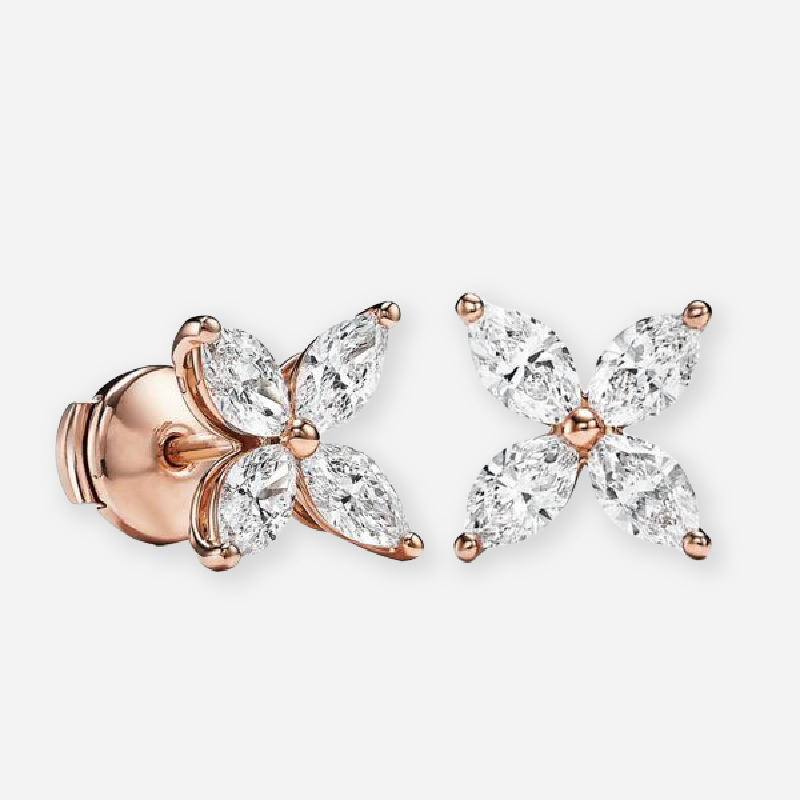 Marquise Diamond Flower Cluster Stud Earrings