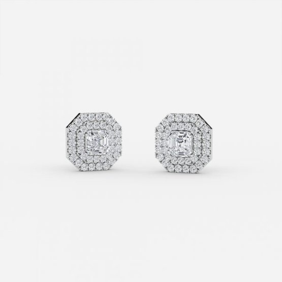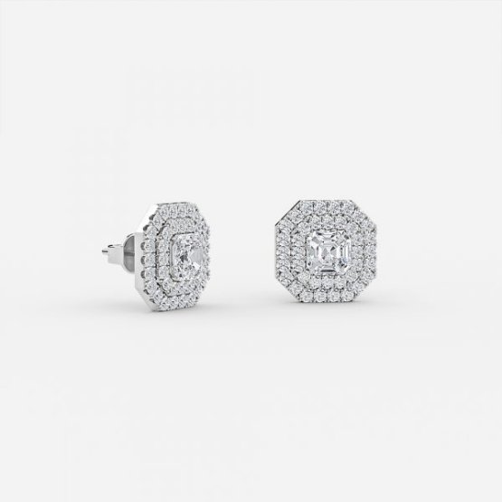 Asscher Lab Grown Diamond Double Halo Earrings quantity