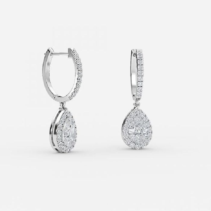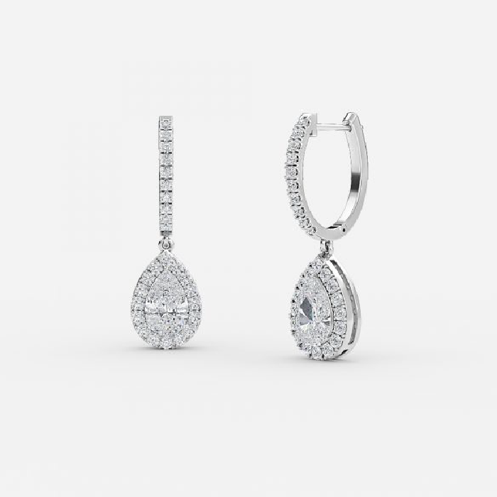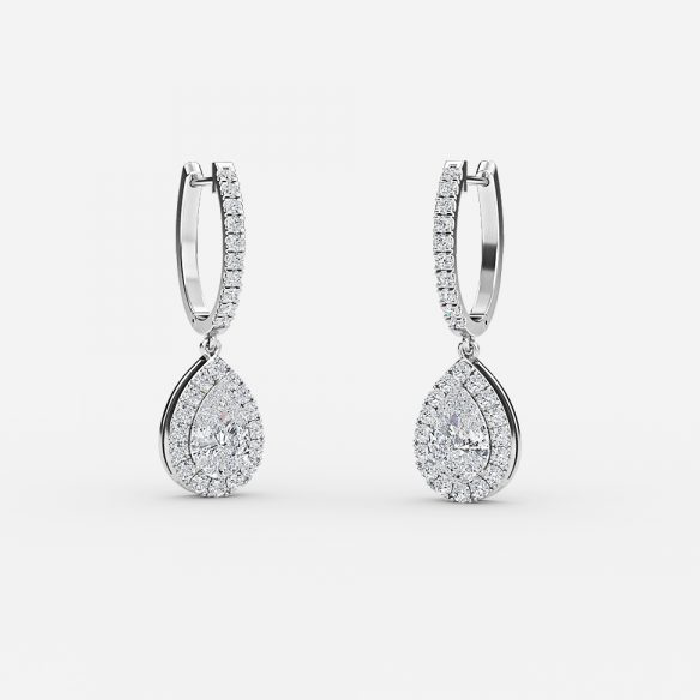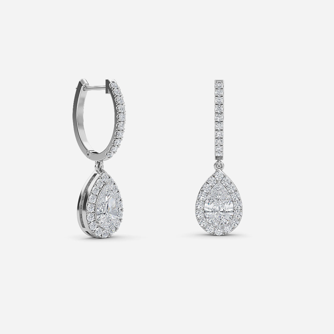 Pear Diamond Halo Drop Earrings